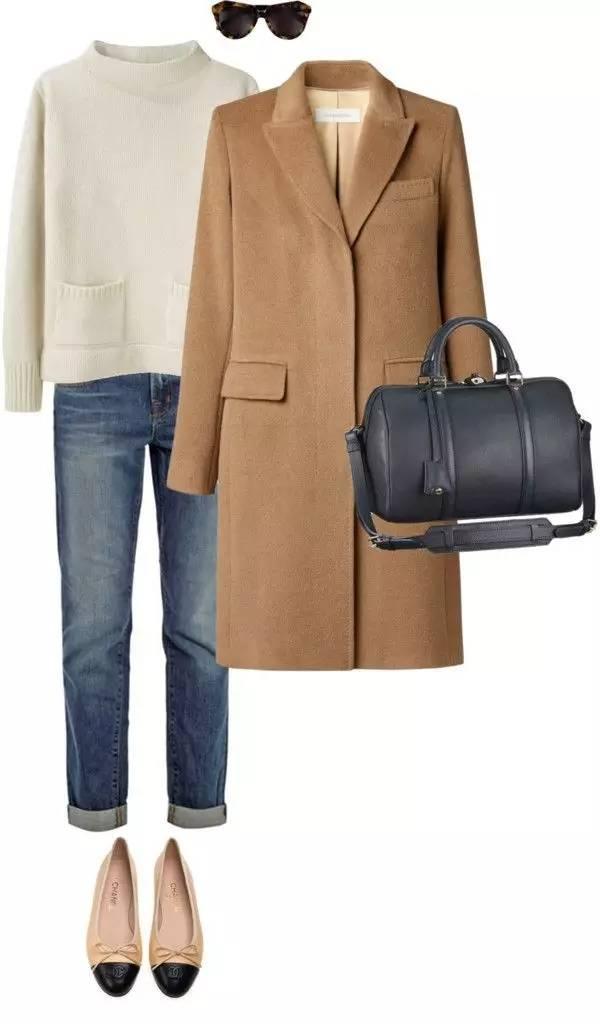 牛仔褲搭配樂福鞋簡約休閒,搭配卡其色大衣時尚又青春。
