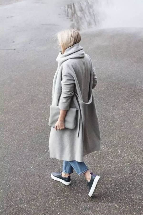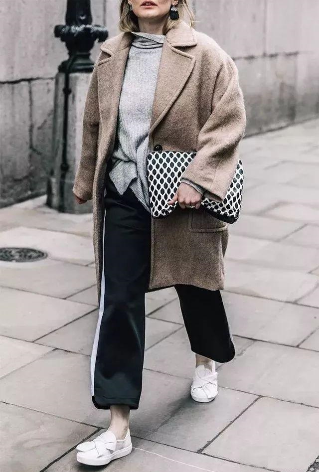 用大衣+闊腿褲+運動鞋,優點多到數不清,百搭舒適,造型多樣,顯瘦顯高還賊拉保暖!
