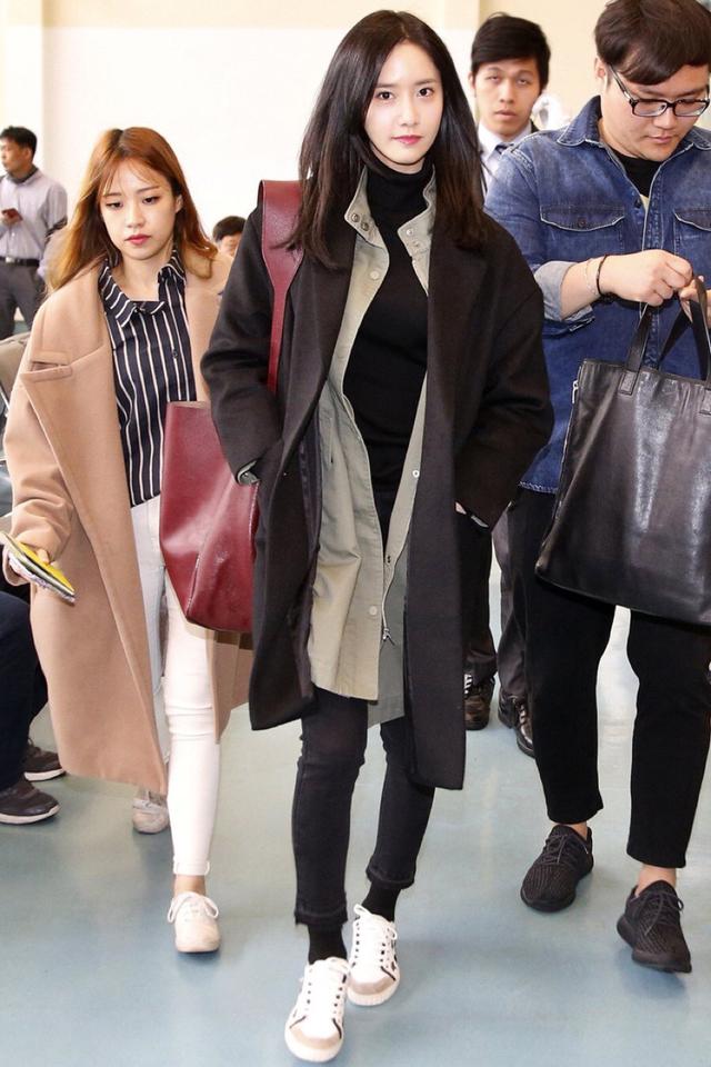大衣裡面配上裙子也是冬季經典,來雙運動鞋更有範兒,休閒風和女人味的混搭可是今年的流行哦~