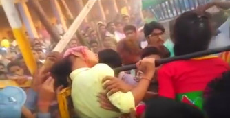7.將面皮放在左手掌心,舀入適量的菜餡兒,用右手的拇指和食指由一處開始先捏出褶子,然後繼續朝一個方向捏褶子,直至將面皮邊緣捏完,收口,成包子生坯。