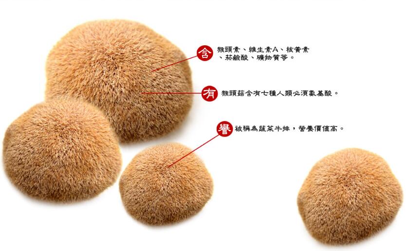 猴頭菇是一種高蛋白、低脂肪、富含礦物質和維生素的一種優良食品。其所含的不飽和脂肪酸,有利於血液循環,能降低血液中的膽固醇含量。能提高人體免疫功能,可延緩衰老。