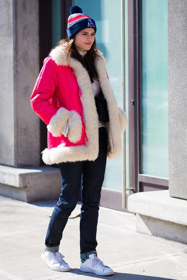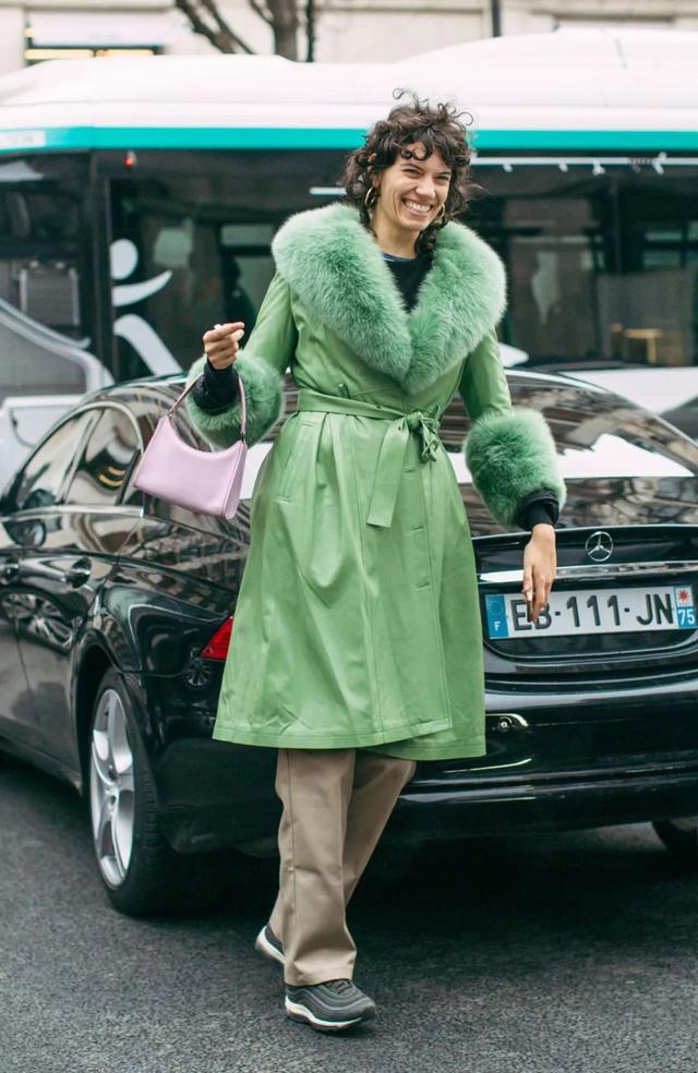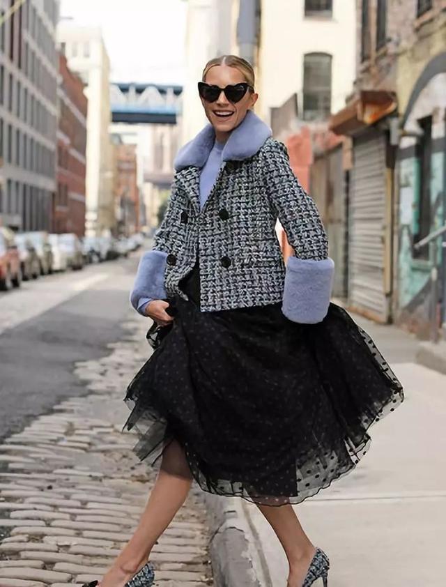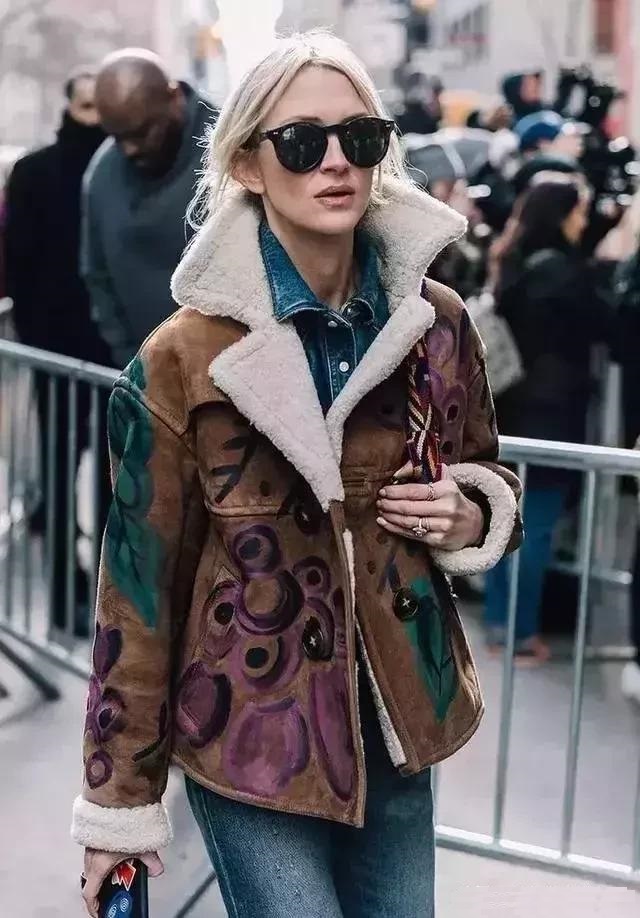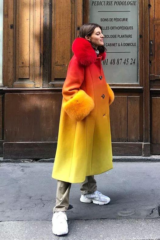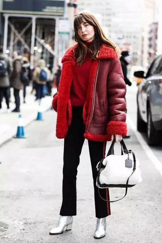袖子有毛毛的外套,比一般的外套更有看點,容易讓人記得住,即便再簡單的純色款,圍上了兩圈毛,整個人也時髦不少。