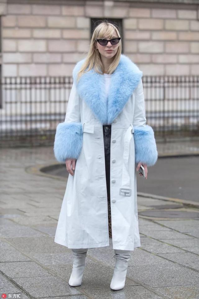 就算是很清新的一身白,或者是容易顯得沉悶的一身灰,都可以靠兩圈毛毛來給造型點睛。