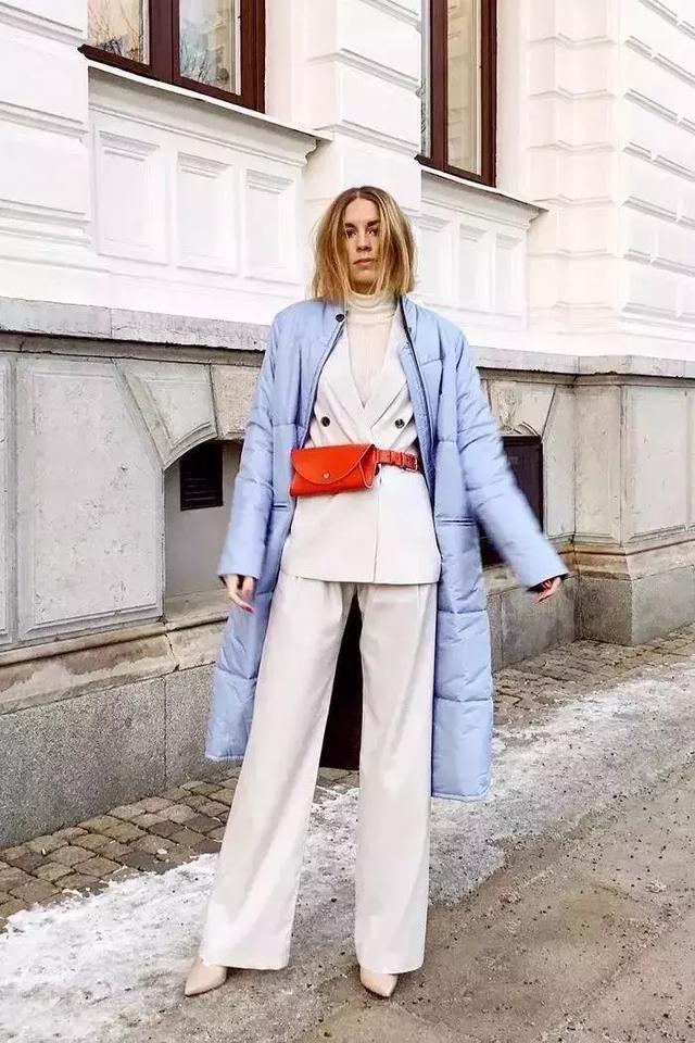 今年很火的單品腰包,也可以充當腰帶啦,搭配好是有範而不是像腰包。