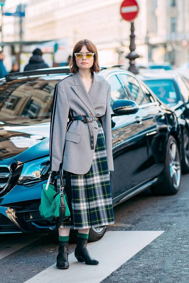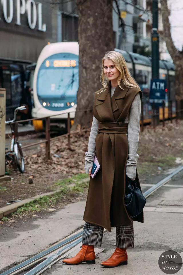 小復古的格紋西裝遇到了腰帶味道也變了,風格立刻變成輕熟的女性風格,搭配尖頭的切爾西靴恰到好處。