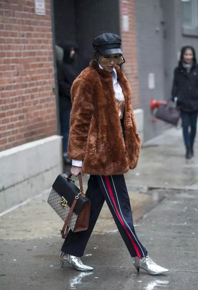 和皮草大衣也是同理,運動褲正好中和了平日皮草老氣的標籤,