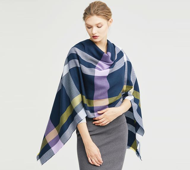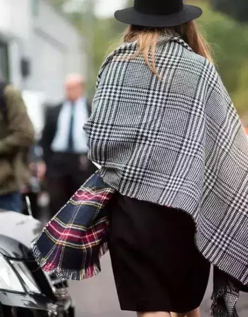 這類圍巾由於面積大,更講究顏色和麵料質地,建議選擇羊絨面料,搭配冷純色,質感更佳哦。