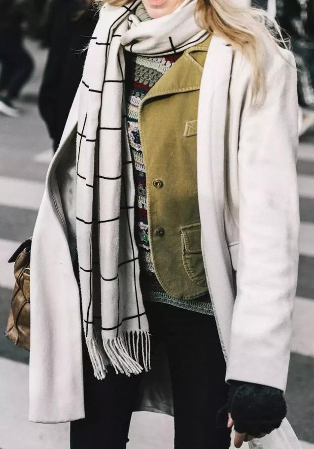 不過有了圍巾這個配飾,就能讓你普通的穿搭更加時髦,而且溫暖加倍哦。