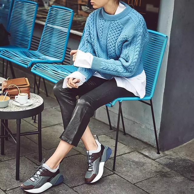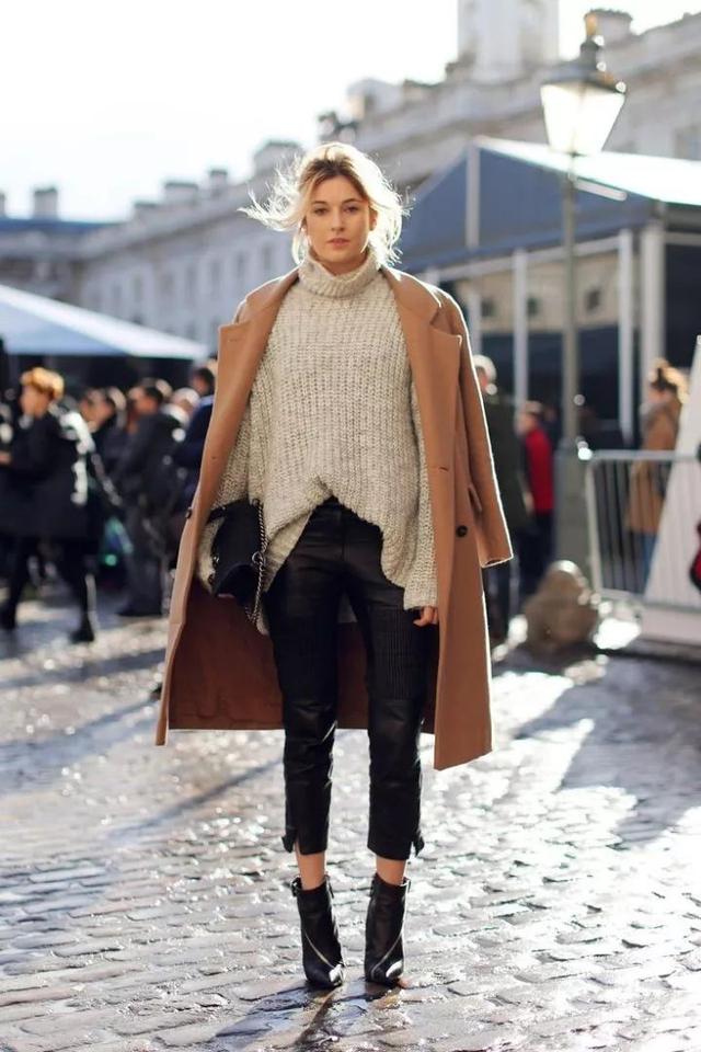 冬季皮褲+毛衣皮褲+毛衣可以說是最常見的組合了,毛衣的柔軟能中和皮褲的硬挺,剛柔並濟恰到好處~