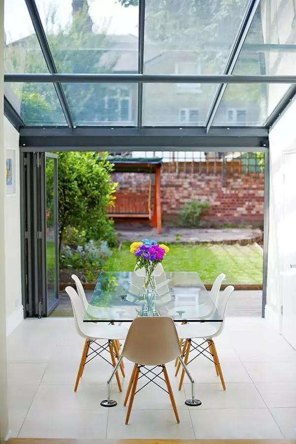 如果你家陽光房用來做客廳、餐廳、書房、活動區等功能空間,一定要注意保溫隔熱這個問題,對於陽光房的玻璃,最好選擇鋼化中空玻璃,配合其他隔熱方法,滿足夏天遮擋陽光、隔熱的需求。