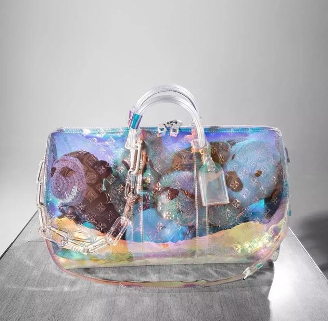 還有這只鐳射材質的旅行袋,是近年Louis Vuitton未來感、科技感風格的代表。