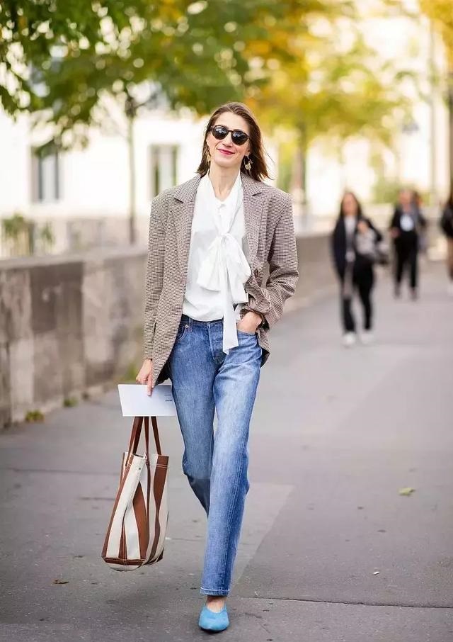 如果你特別喜歡白襯衫,也可以選擇這種帶有繫帶元素的,穿起來優雅又乾練,多了幾分輕熟的氣息。