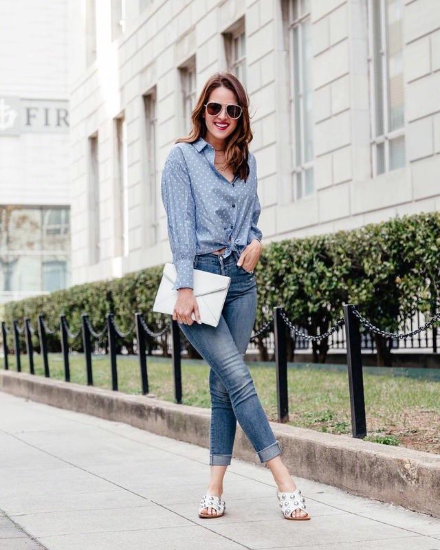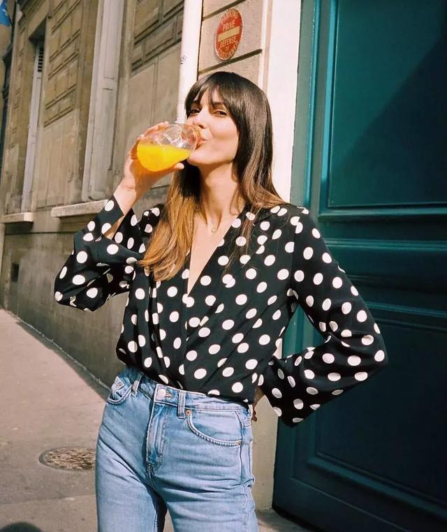 帶有法式浪漫的方領口波點襯衫,穿起來浪漫又文藝,搭配牛仔褲或者西裝褲都特別好看哦~