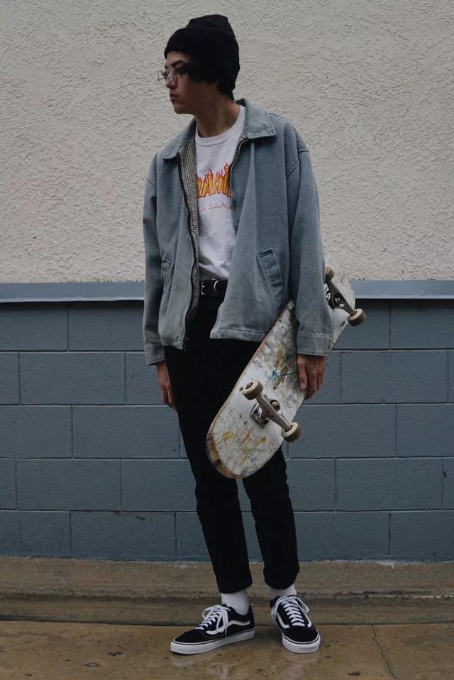 一雙經典的Authentic布鞋通過撞色的搭配技巧讓造型變得非常個性,所以說只要把每一件單品的特點展現出來造型就很吸晴了。