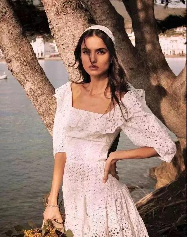 Milkmaid一般是白色方領款的比較多,領口的寬度幾乎是整個鎖骨的長度。