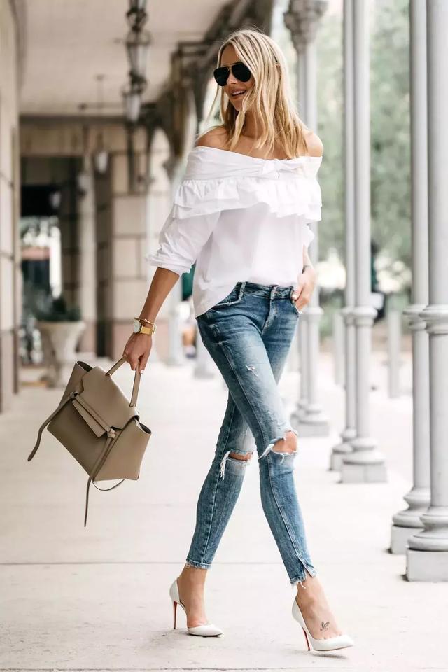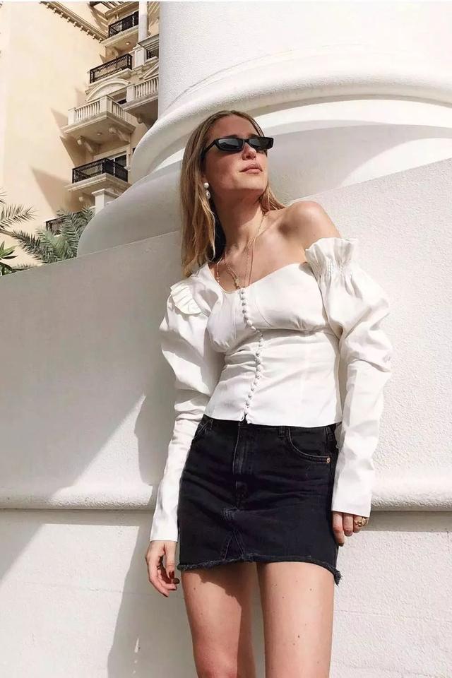配牛仔褲、短裙這種最簡單的款式,更能突出襯衫的美。