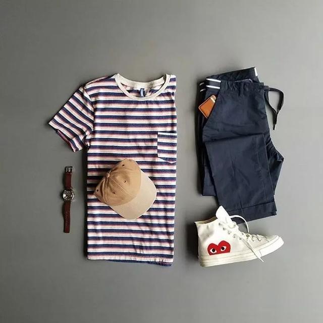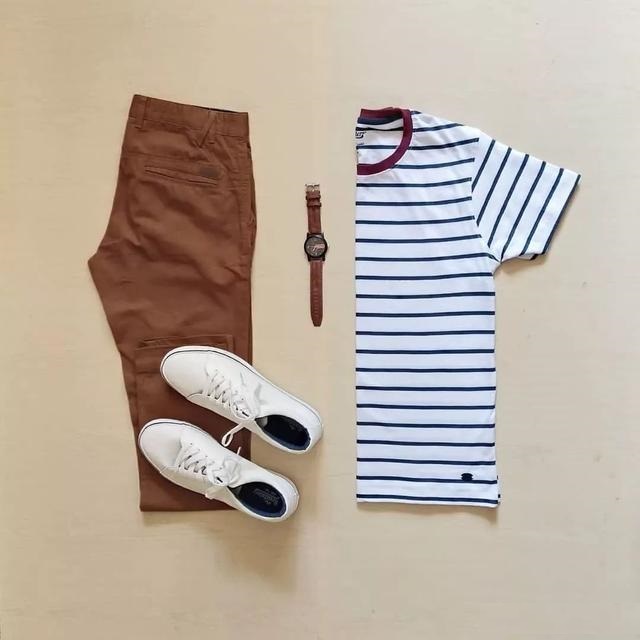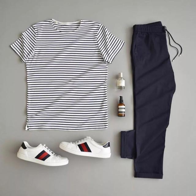 條紋T,絕對是任何年齡層的男士都可以駕馭的!快點把這身搭配穿起來吧!