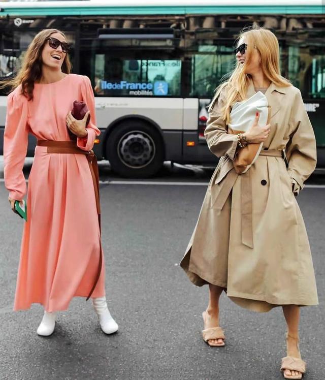 一個連衣裙,一個風衣裙,絲毫不違和,舒服又得體。
