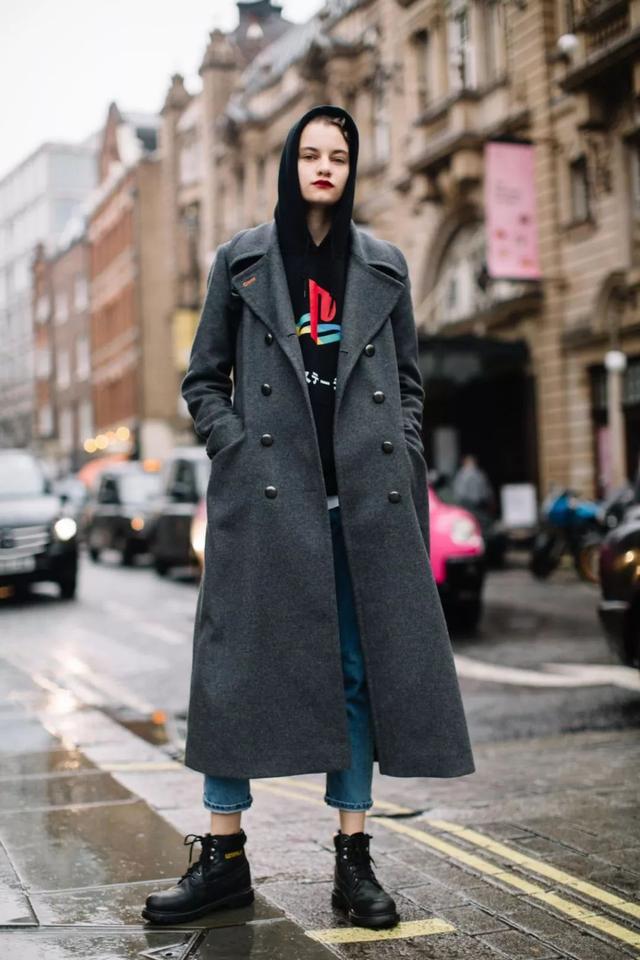 衛衣+大衣=2018秋冬最火混搭套路。休閒運動風格的衛衣可以完美平衡大衣的輕熟感,演繹時髦與氣場並存的潮帥街頭風。