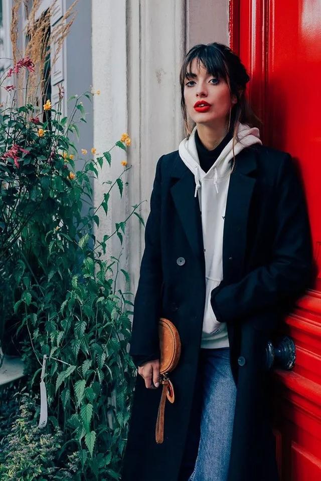 大衣+衛衣的組合火爆時尚圈,在各路時髦女明星的街拍中已然成為標配的節奏。