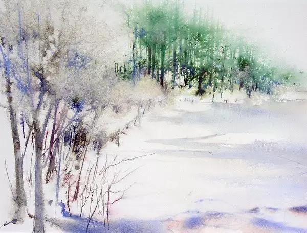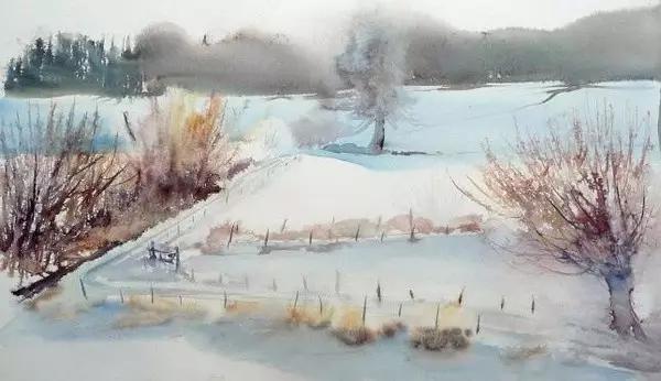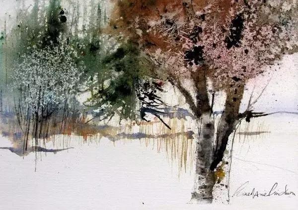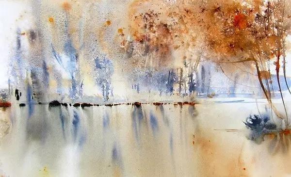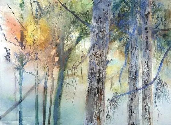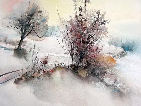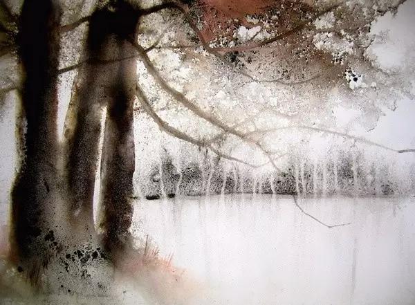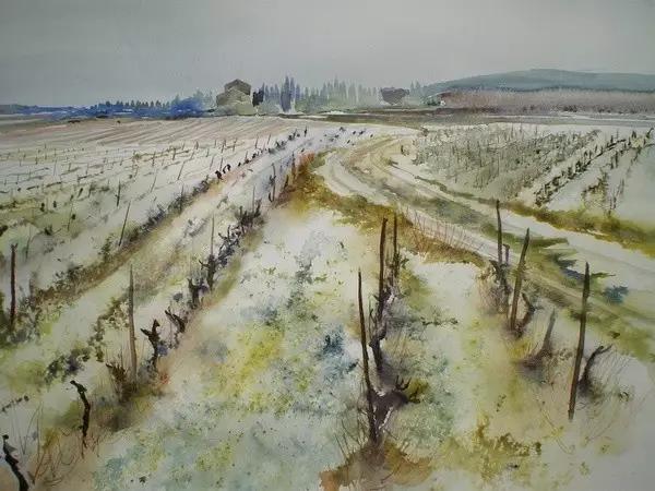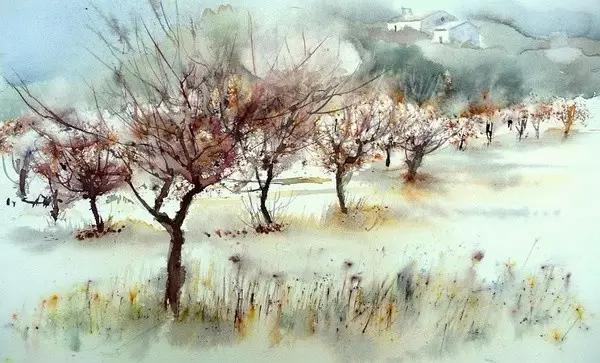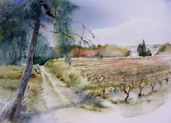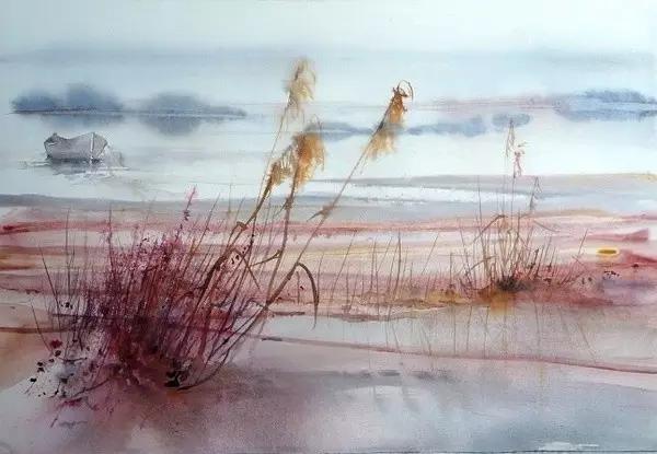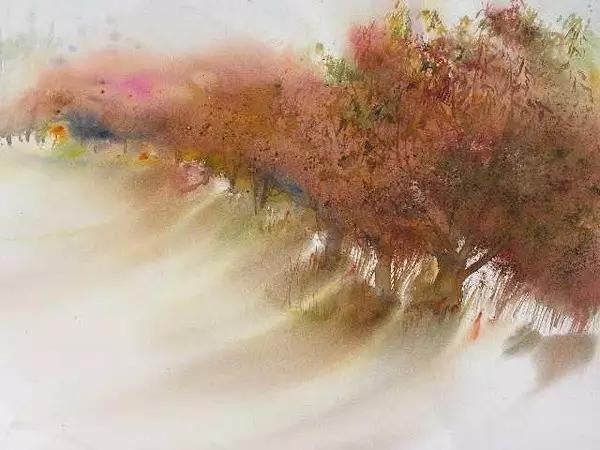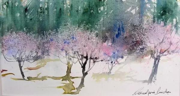 法國畫家Reine Marie Pinchon的水彩風景畫麵類似於中國水墨的質感
