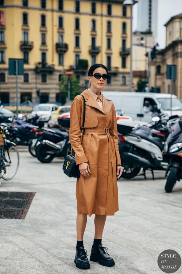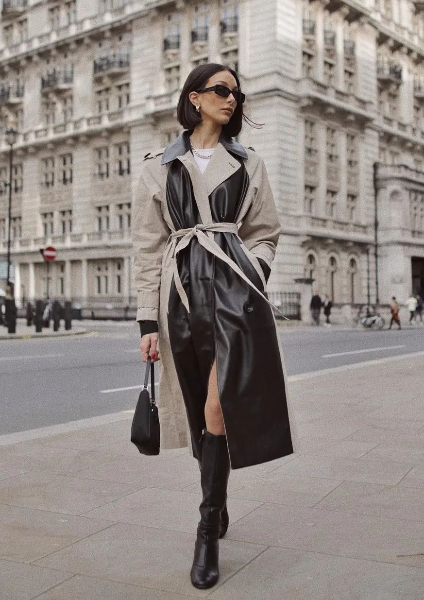 秋冬必備的大衣,各種新款層出不窮,結合最時髦的皮革面料,高級感順手拈來。突破了大衣的刻板,讓整體更有設計感,也更適合酷感女人。