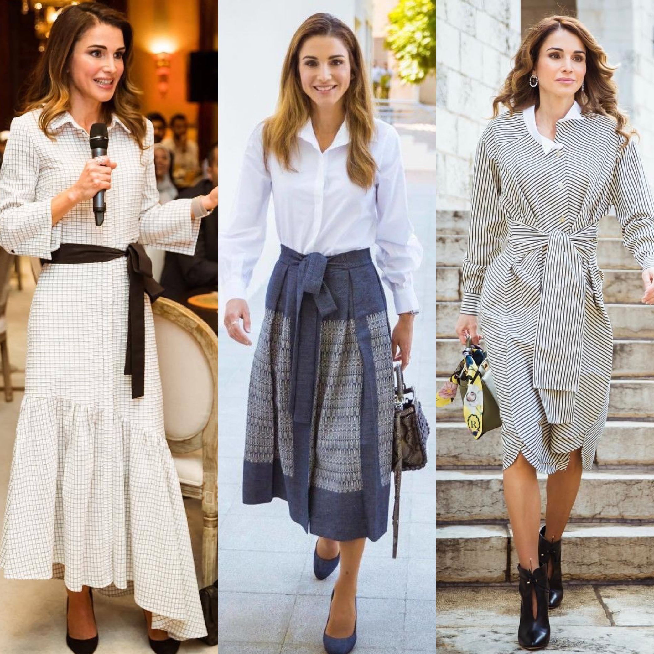 在約旦的眾多家庭合照中,拉尼婭王后都會選擇絲質的著裝。