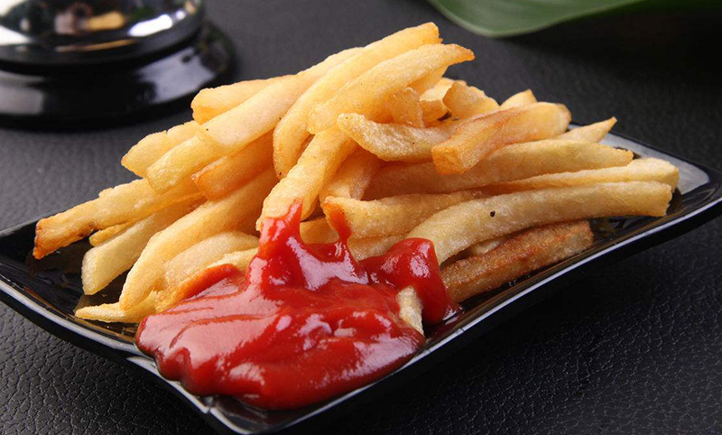 - 放入1小勺食用油拌勻,讓每根薯條都裹上油