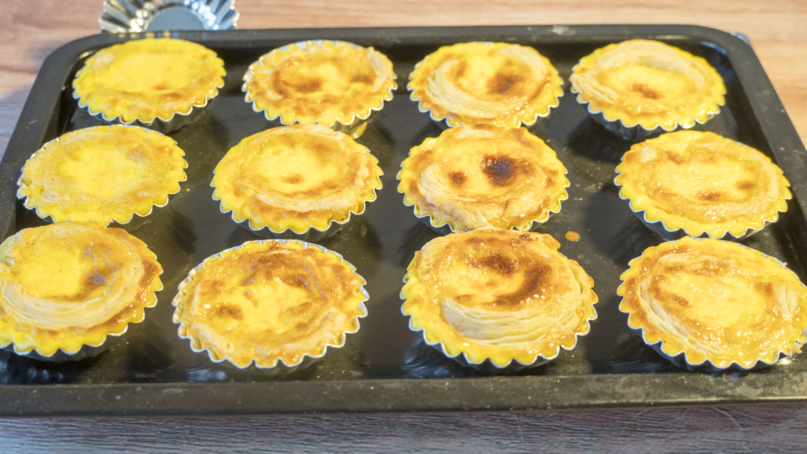 剛出爐的蛋撻是鼓鼓的,稍微的放涼一會兒再吃,外焦里嫩,非常的香,塔皮,酥脆又多層而且顏色也好看,底部也是焦焦脆脆的。