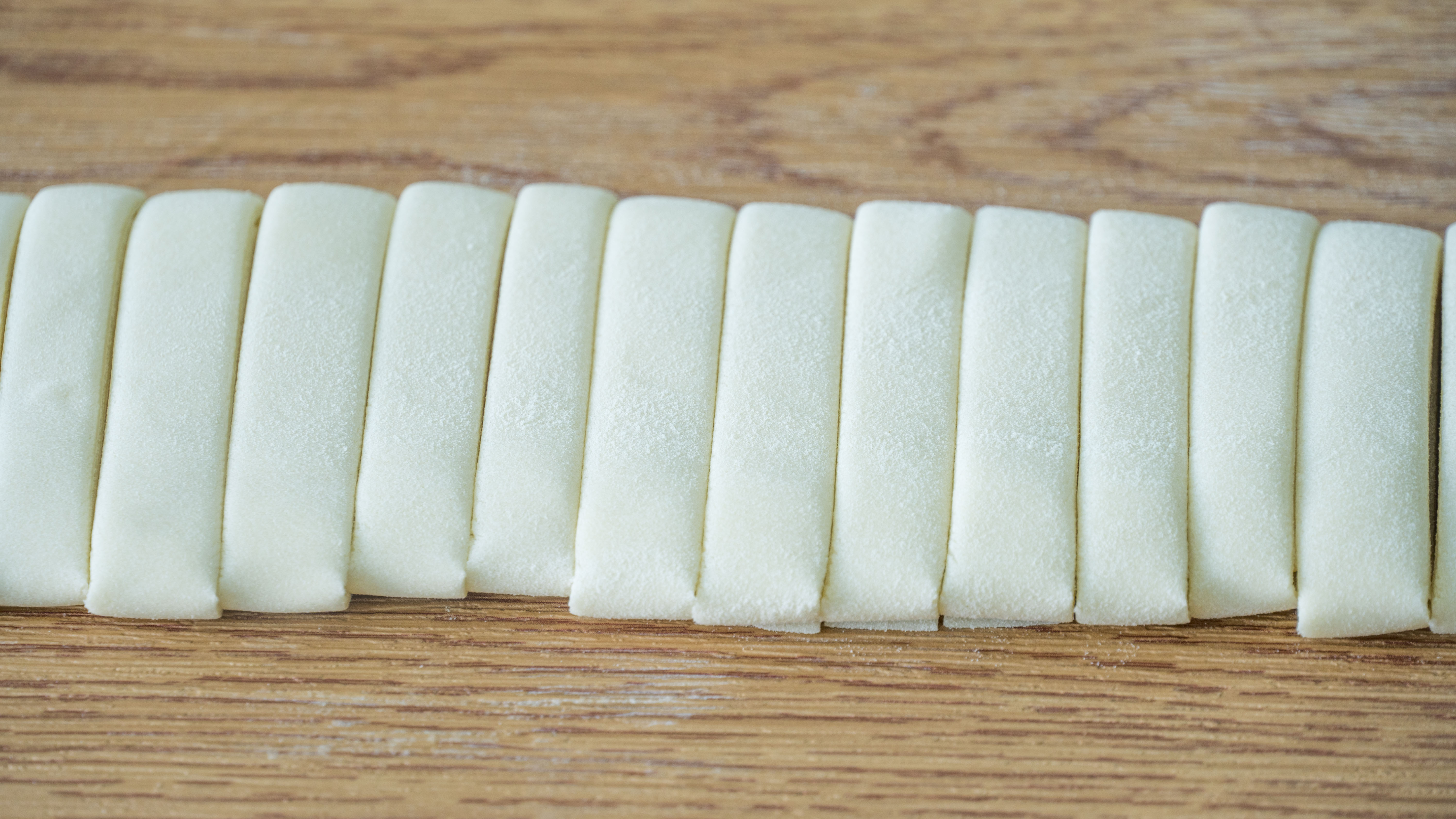 5、15分鐘後的麵條其實不搓也可以,輕輕的抻一下就可以變得很長,也不會斷,而且表面也很光滑;