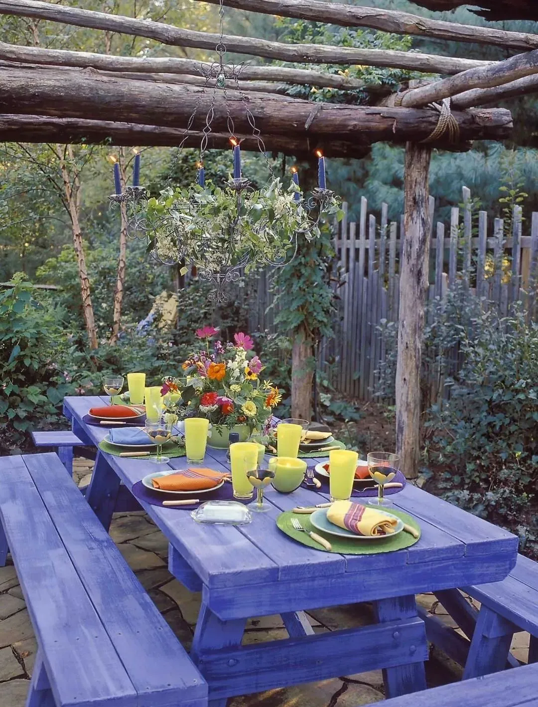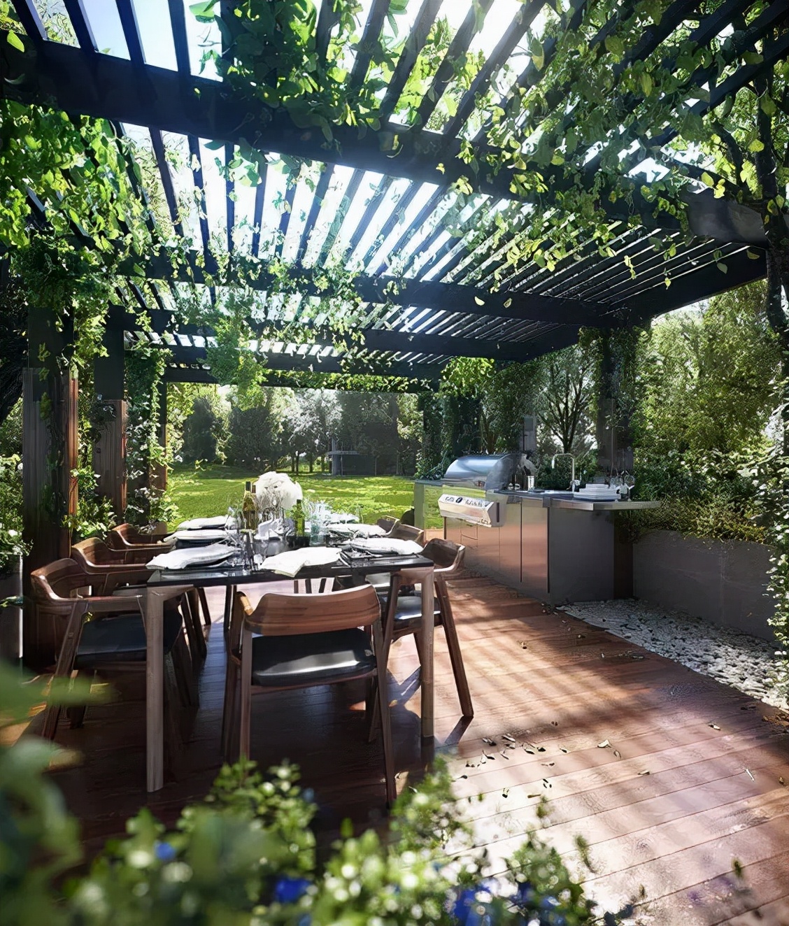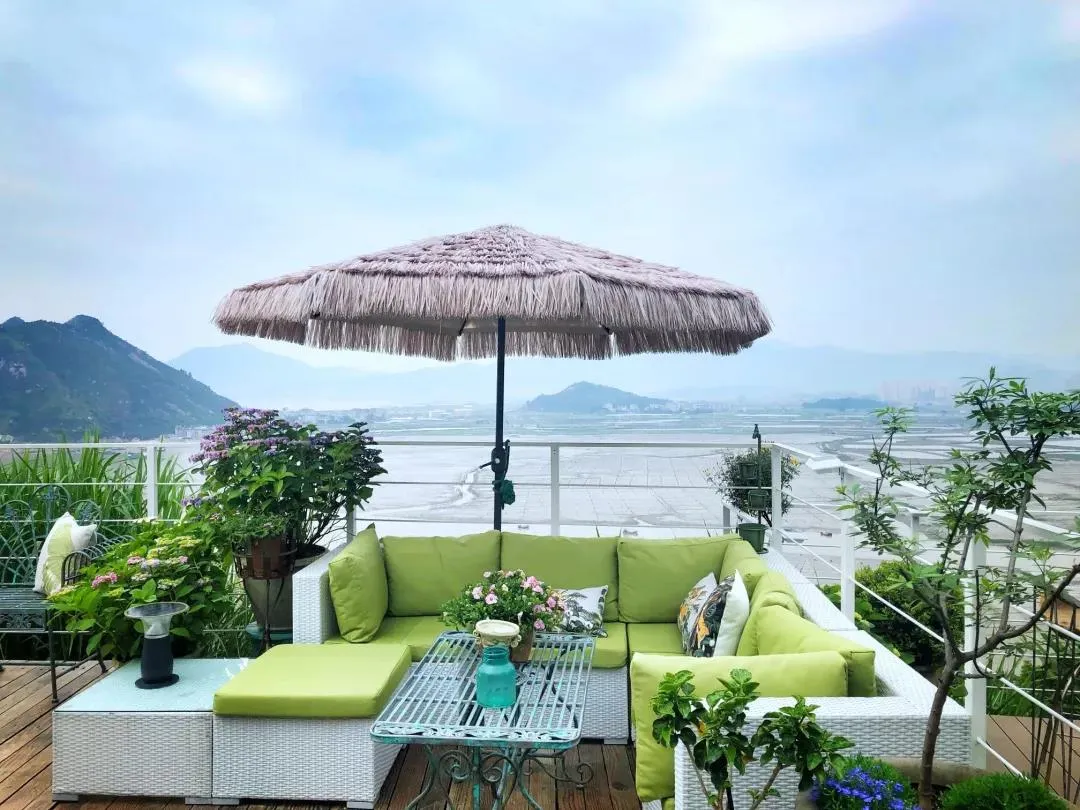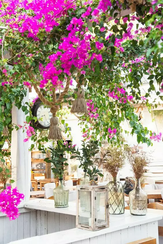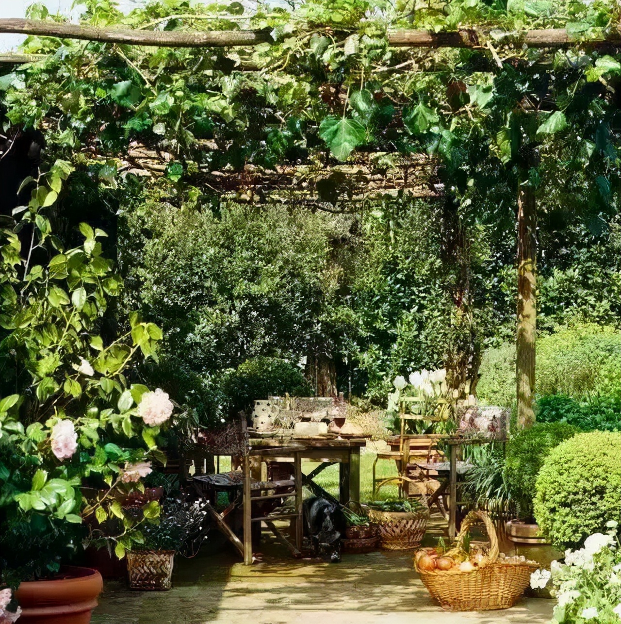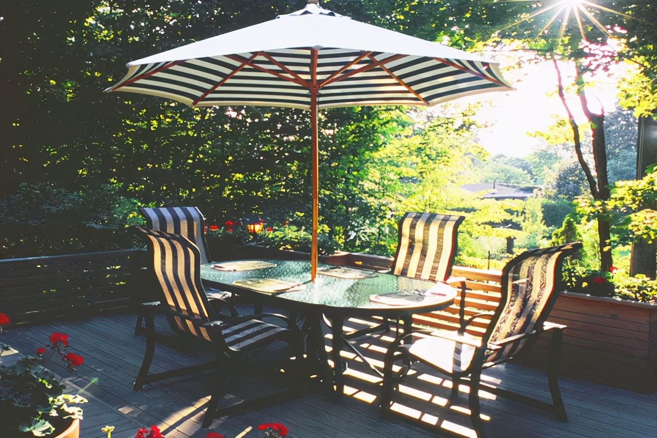 紫藤架下或凌霄花前放一把休閒躺椅,