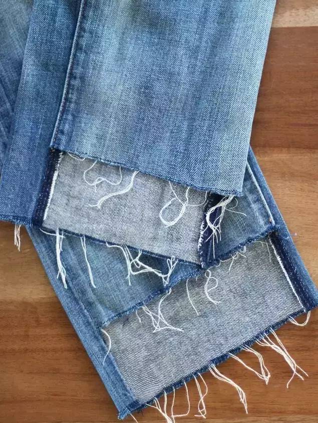 除了撕邊,你可以嘗試一下毛邊褲腳,又稱 粗條而略長的流蘇,
