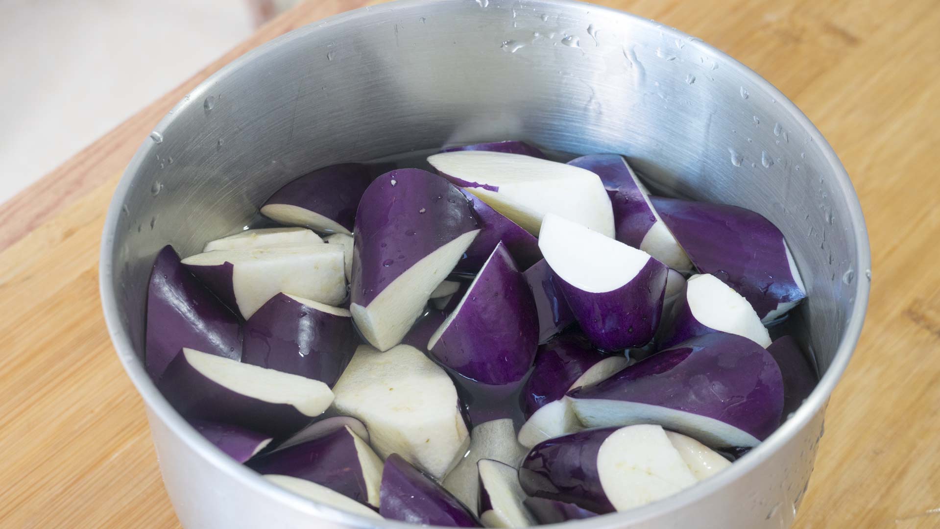 〖 食材清單〗3個茄子、1勺鹽、3個雞蛋、食用油