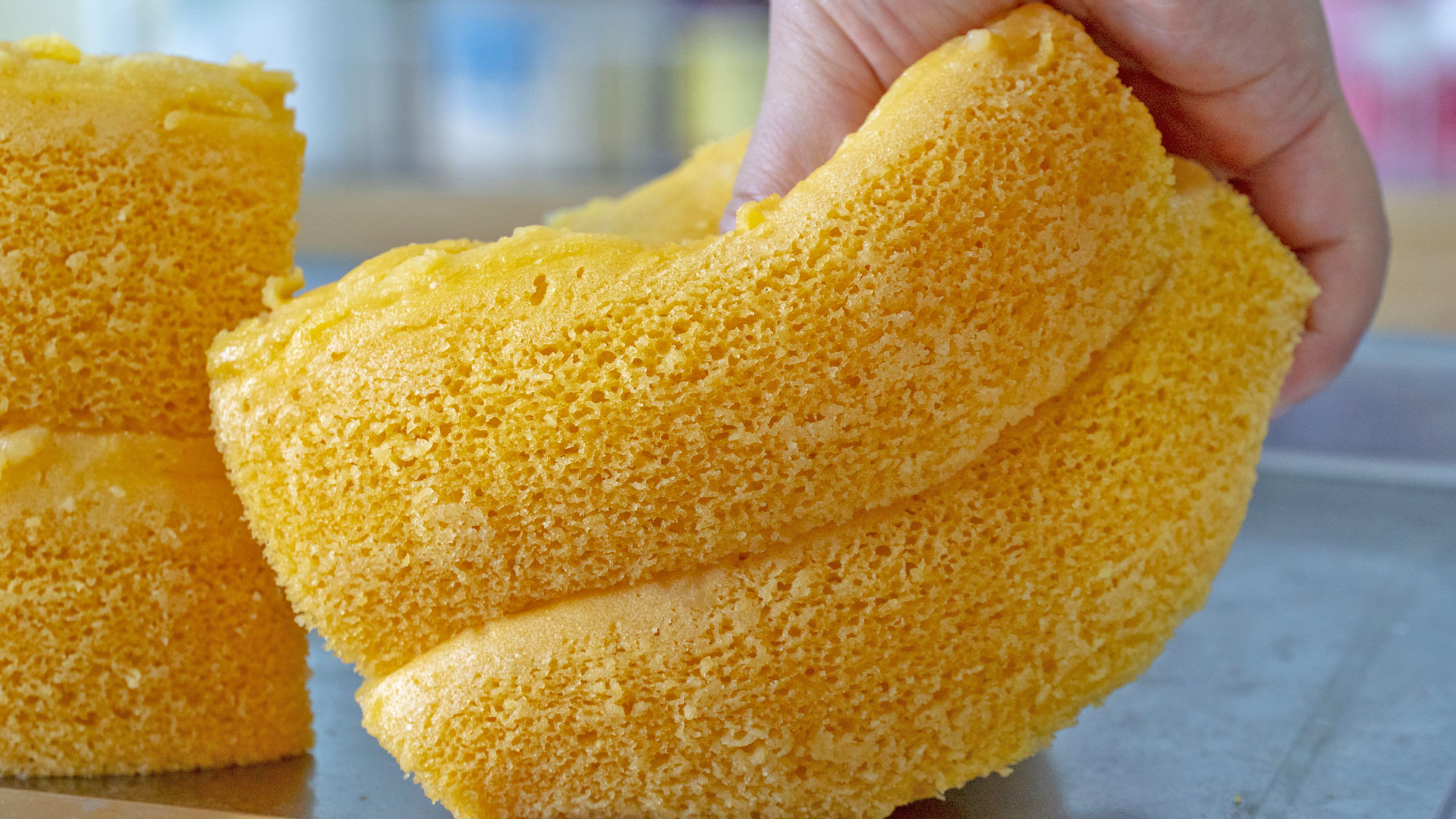 而且氣孔組織也非常的均勻好看,沒有較大的氣孔,口感上就是細膩香甜,一點也不粘牙,吃起來柔軟又帶一點Q彈。