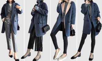 神秘的藍色長外套搭配黑色方包