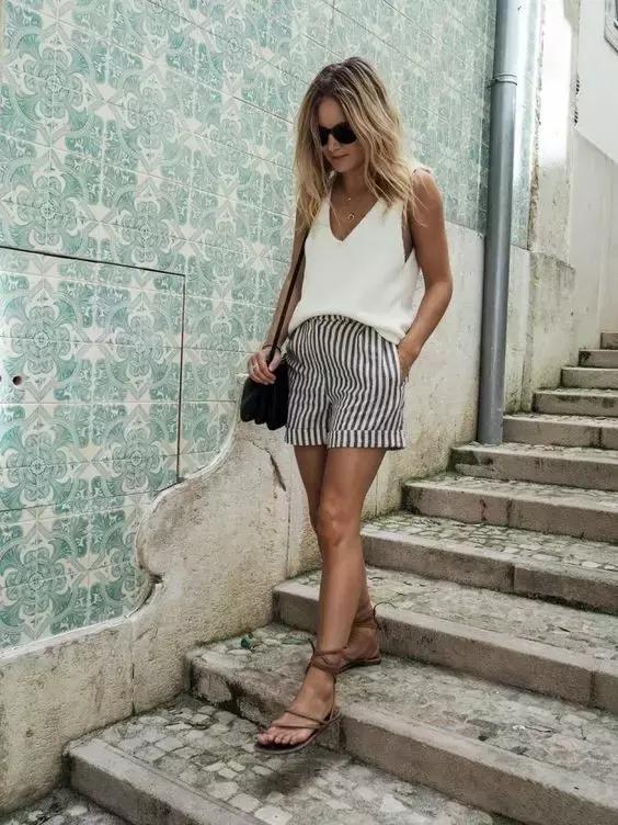 豎條紋的款式能夠拉長腿部線條,和普通基礎款短褲相比也多了幾分獨特。