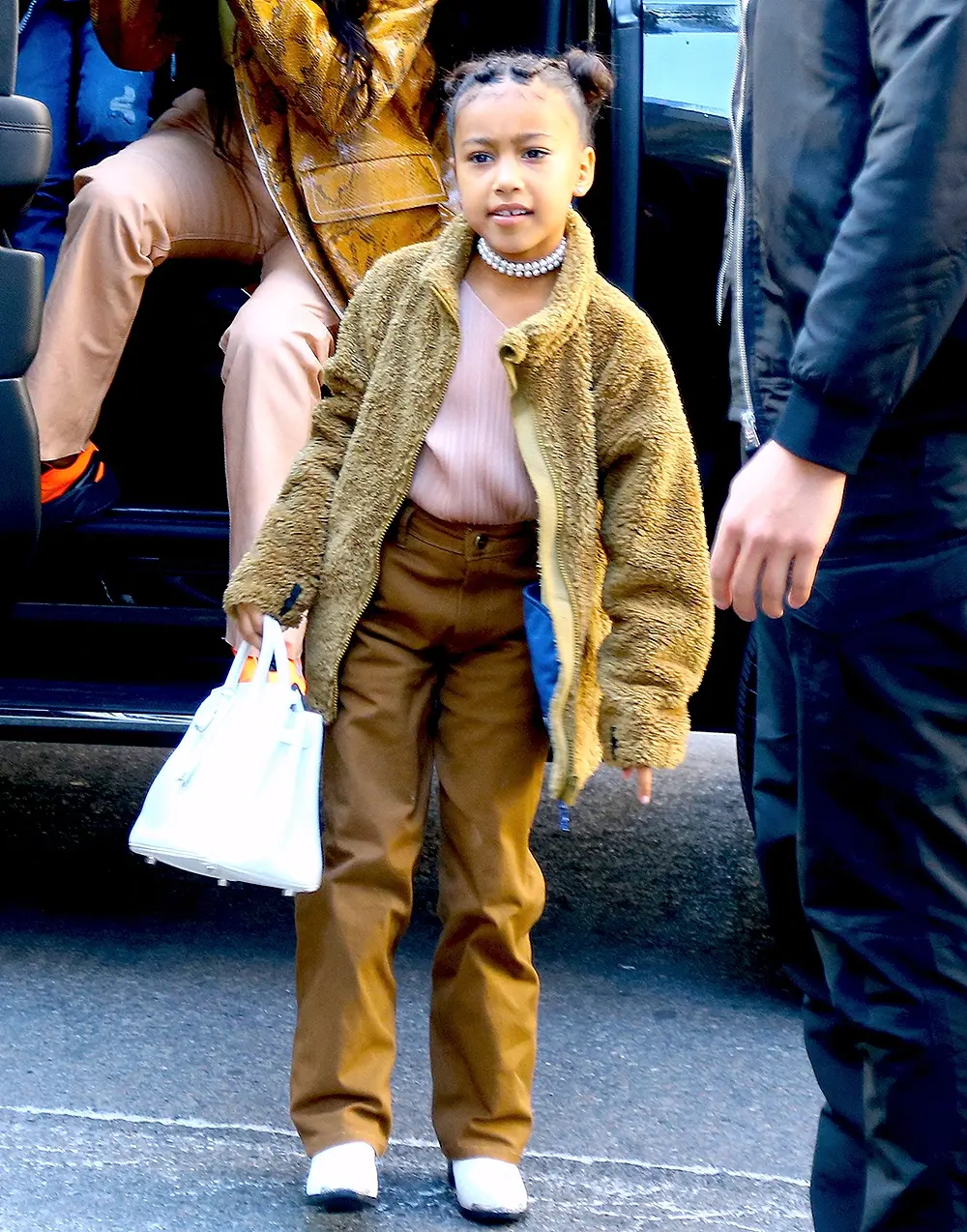 金·卡戴珊的女兒諾斯在第五大道的薩克斯百貨購物,一身咖色,拿著白色手袋。