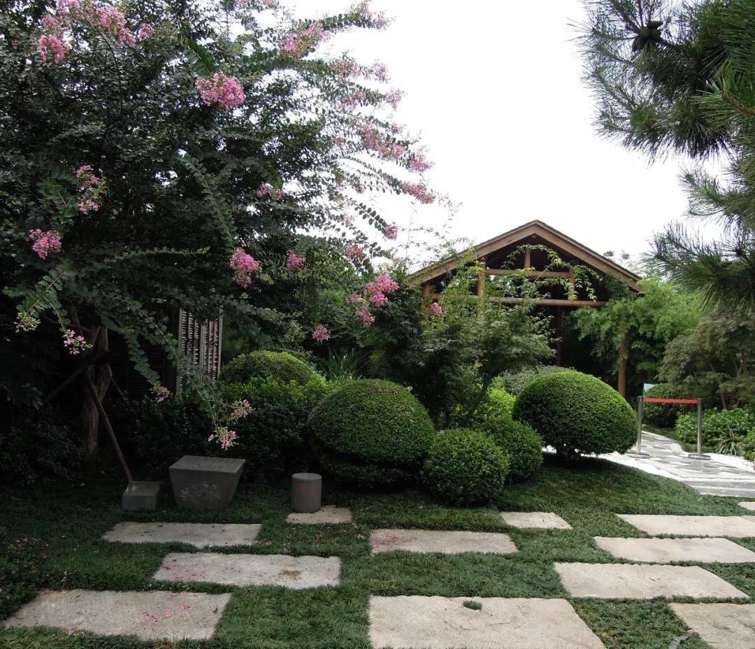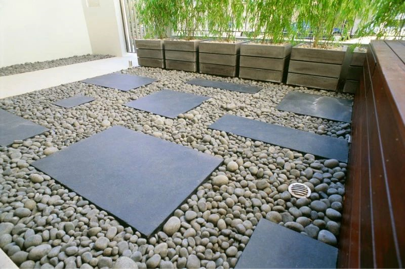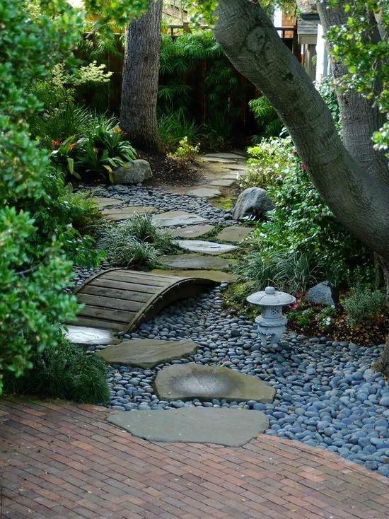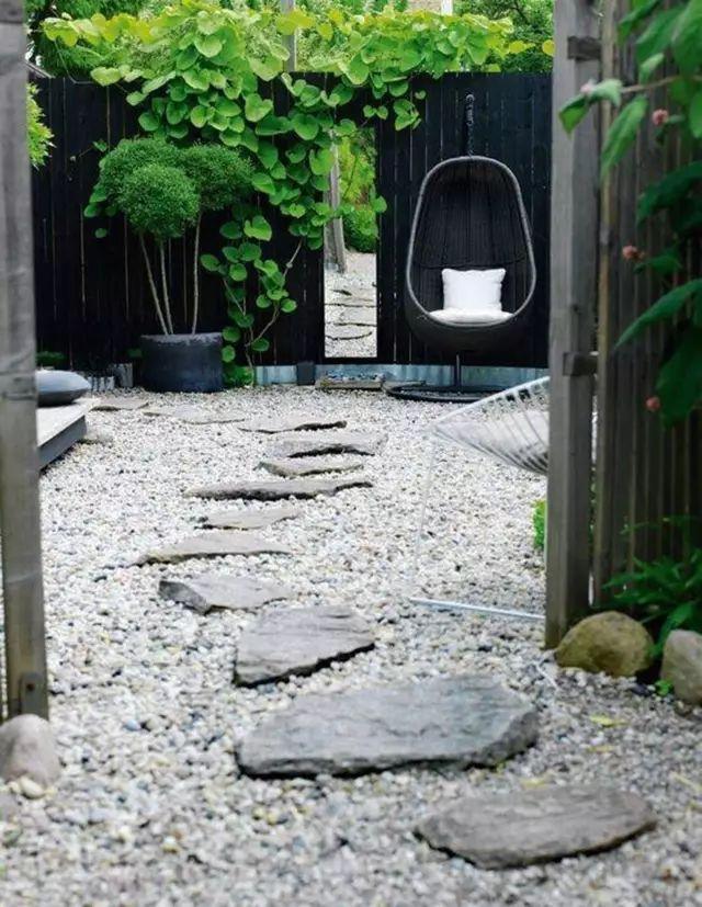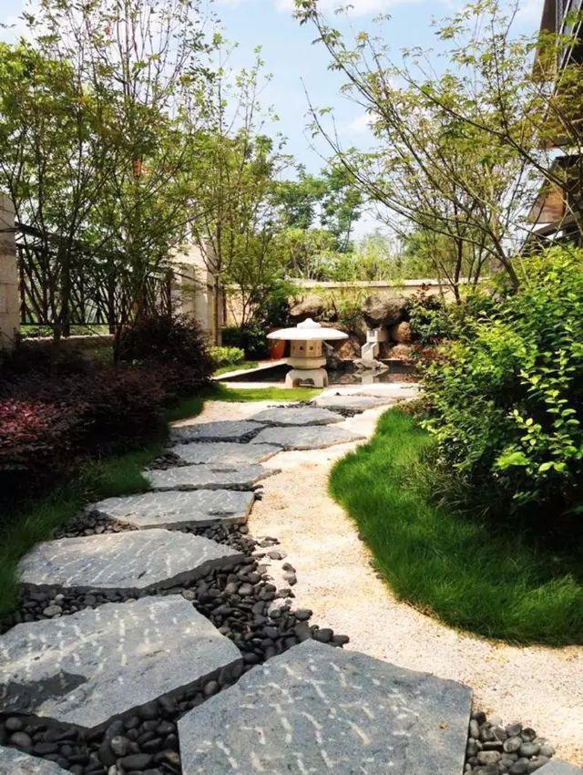 與沙礫結合的汀步,在形式上構成變化和對比,在色彩上卻能很好的做到統一,使整個空間搭配和諧。