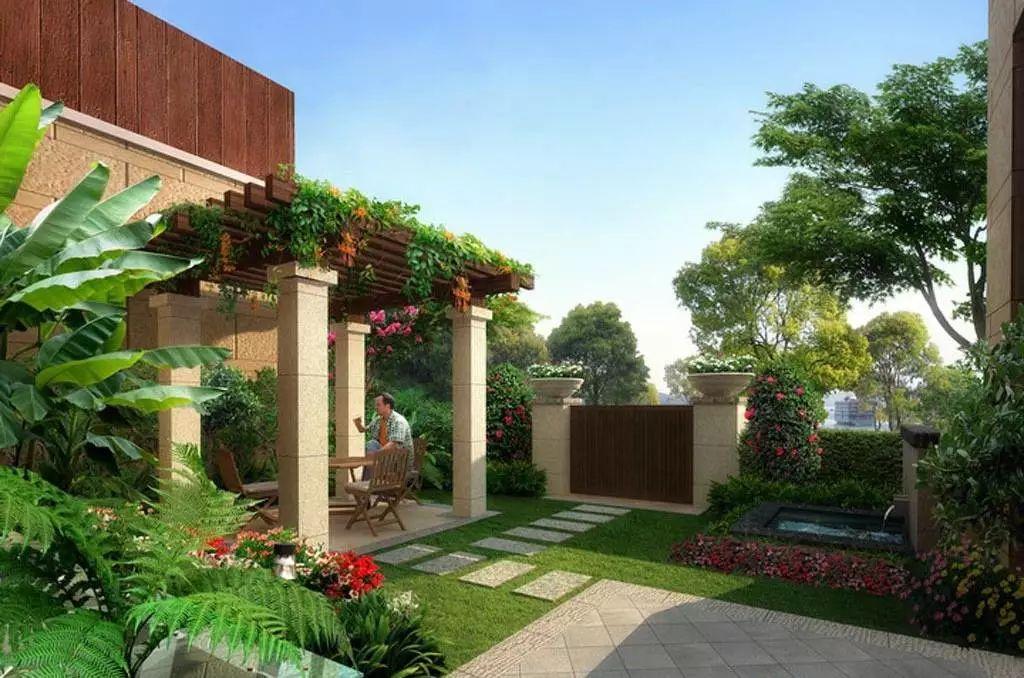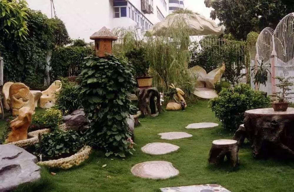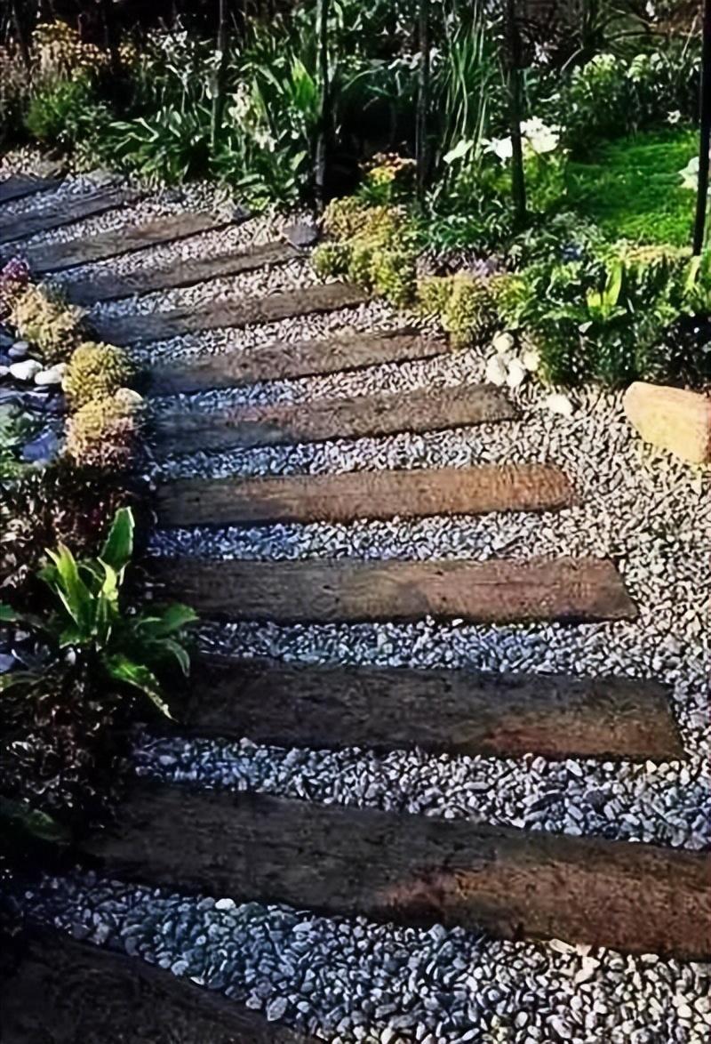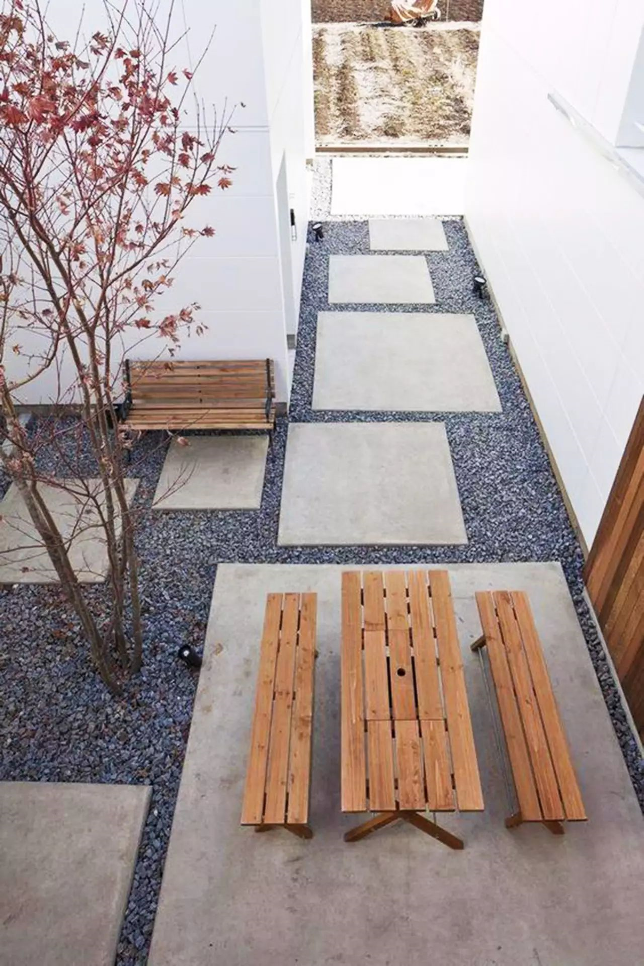 與沙礫結合的汀步,在形式上構成變化和對比,在色彩上卻能很好的做到統一,使整個空間搭配和諧。