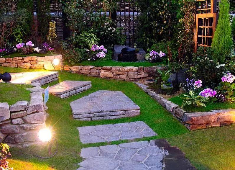 鋪於草坪上的則為旱汀步,功能主要為遊路,起引導和觀賞作用。