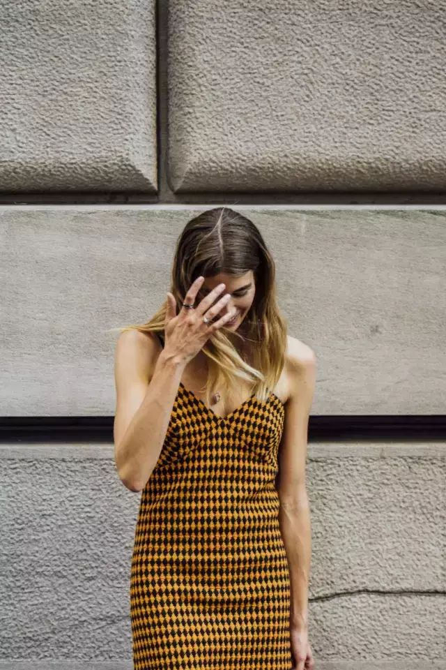 很多博主喜歡用踝靴搭配連衣裙,長款連衣裙本就覆蓋了整個身體,再加上會包裹腳麵的踝靴,這種密不透風的感覺並不美。正確的穿法是裙子末端和靴子之間露出幾厘米的皮膚,這樣才清爽不累贅,同時也會讓腿看上去更長。
