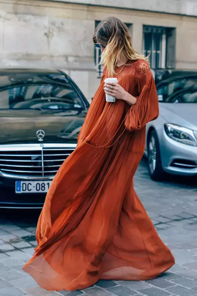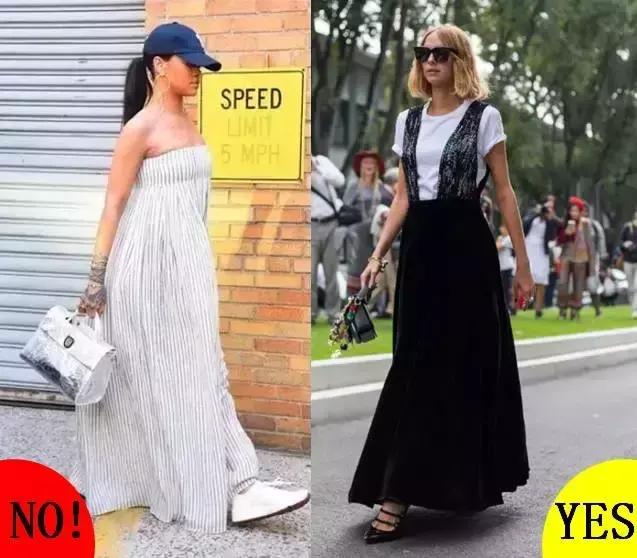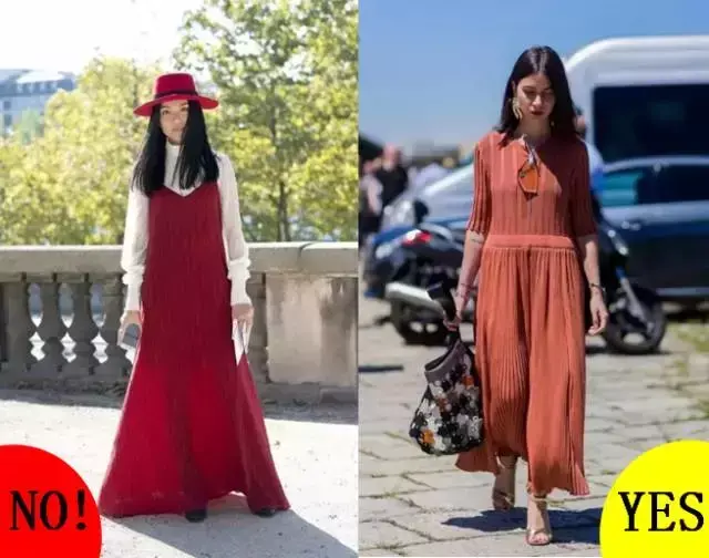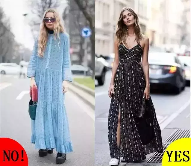 長裙不是說裙長越長越仙,如果過長容易吞沒你整個人,變成“裙子穿你”的尷尬效果,所以適宜的裙擺應該是恰巧長及腳踝最細位置,或者這個位置以上2-3cm是最佳長度。