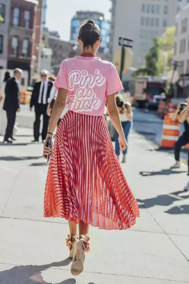 簡單純色的小白鞋比圖案豐富的小白鞋更百搭,左側的T恤和裙子已經算是複雜的樣式,再加上厚底、黑鞋帶和蕾絲裝飾的小白鞋,看上去特別繁瑣。