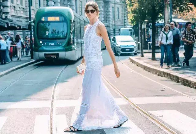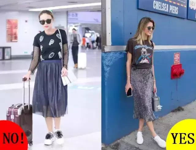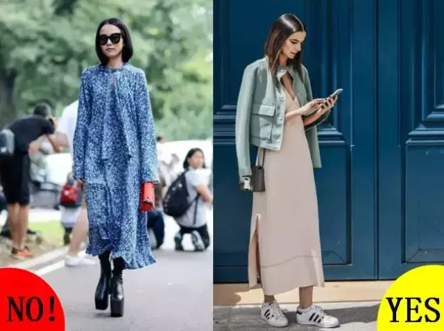 穿長裙時穿的太厚太高的高跟鞋,反而失去了長裙的飄逸,讓人看起來更為笨重,遠不如一雙纖巧的中跟鞋或者尖頭平底鞋好看,有時候一雙百搭小白鞋就能解決一切問題。