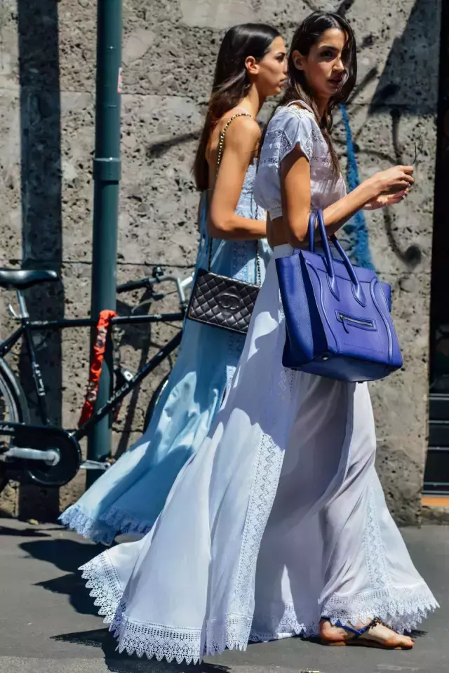 擔心撐不起長裙的,可能就會不小心選了防水台、超高跟,可是這樣的搭配往往會破壞長裙原本的輕盈和飄逸,有高度沒風格。所以要選擇高跟鞋的話,要選擇纖細的款式。
