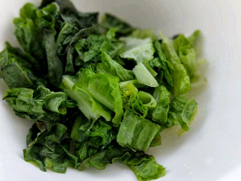 1.我家每次用萵筍做菜葉子都不會丟掉,萵筍的葉子我都會用來炒菜或者是做湯,因為萵筍葉的這部分營養價值還是很高的,類似生菜,將萴筍的葉子清洗乾淨了以後切成小段準備好。