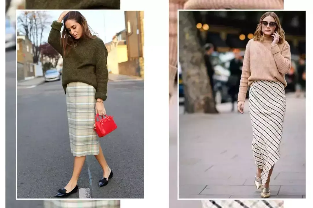 H型的針織半裙+寬鬆款的針織衫,這樣的套路就保暖又顯瘦~
