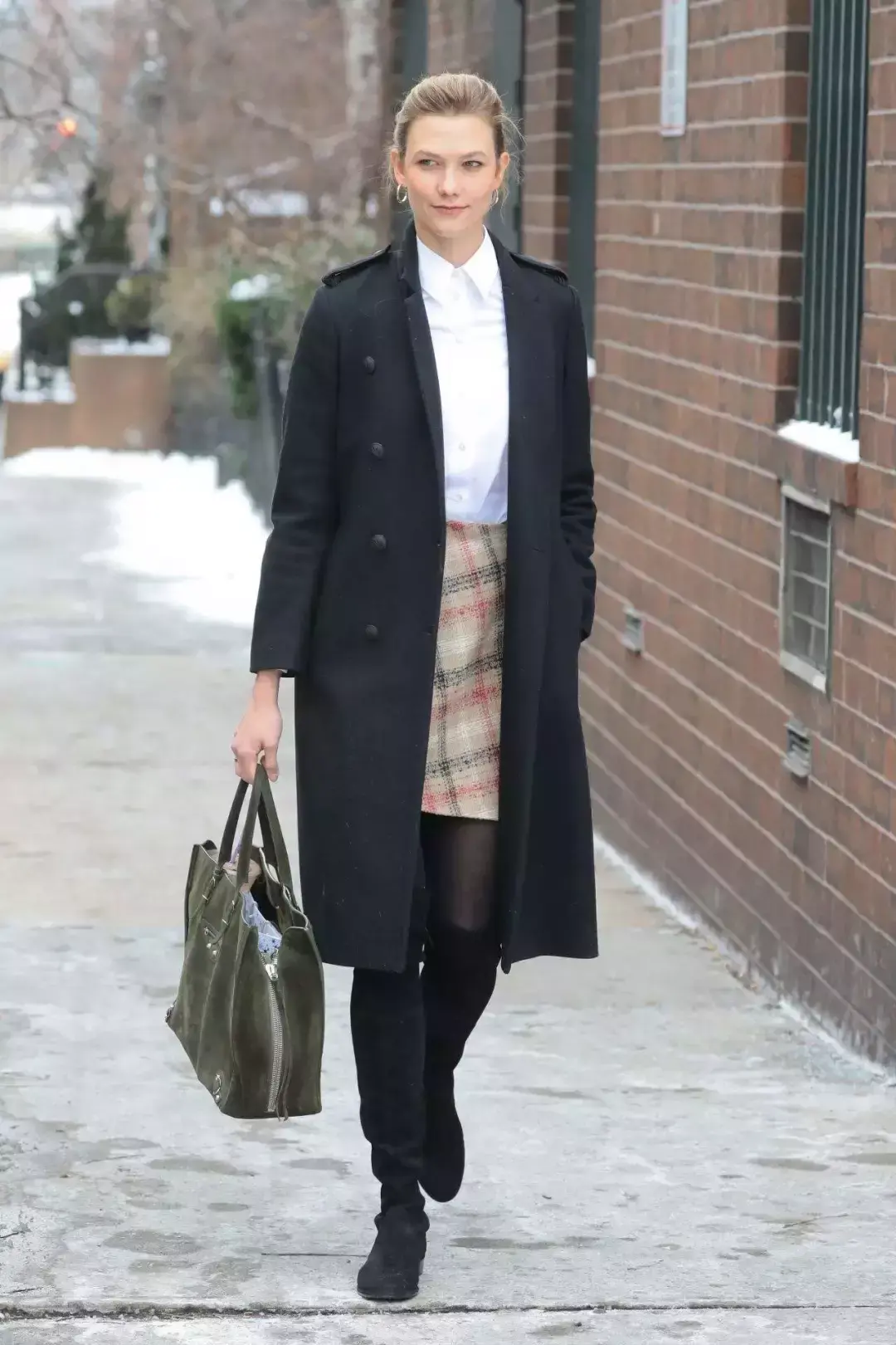 去年夏天很流行的維希格紋半裙,入春後穿也有別樣的魅力。