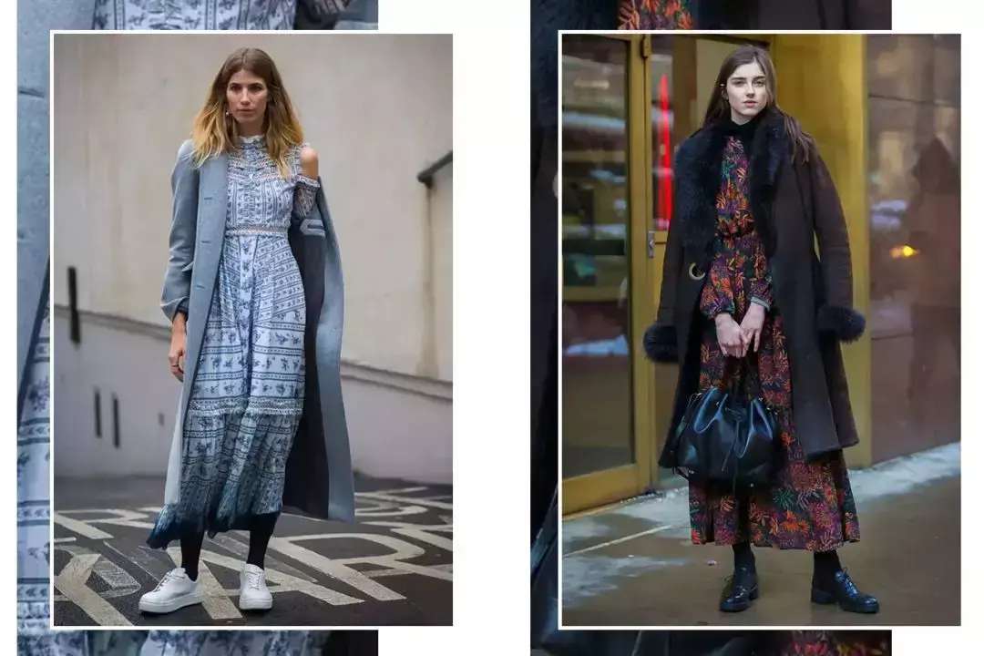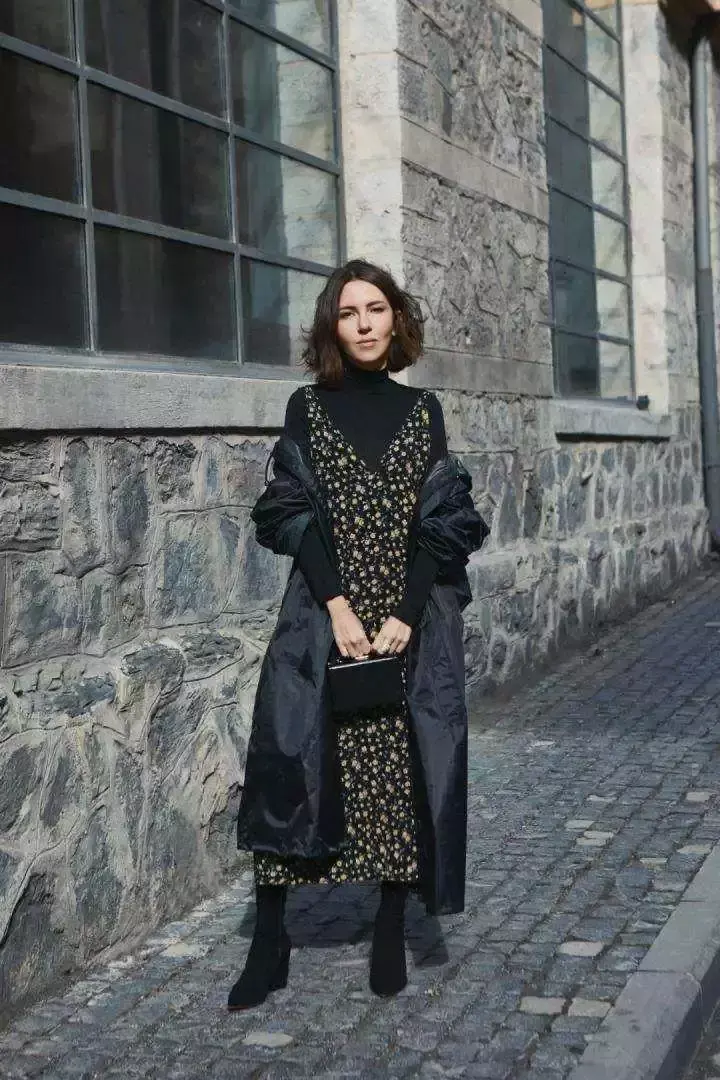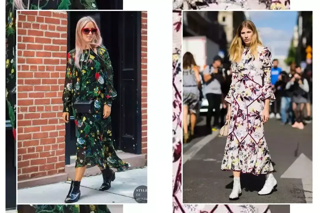 亮麗的色彩+曼妙的花朵......無論是長裙還是短裙,都會讓你成為浪漫甜美的「花仙子」。 厚外套與飄逸薄透的印花裙形成強烈的對比,不僅減輕了look的厚重感,還能顯得整個人靈動活潑許多!