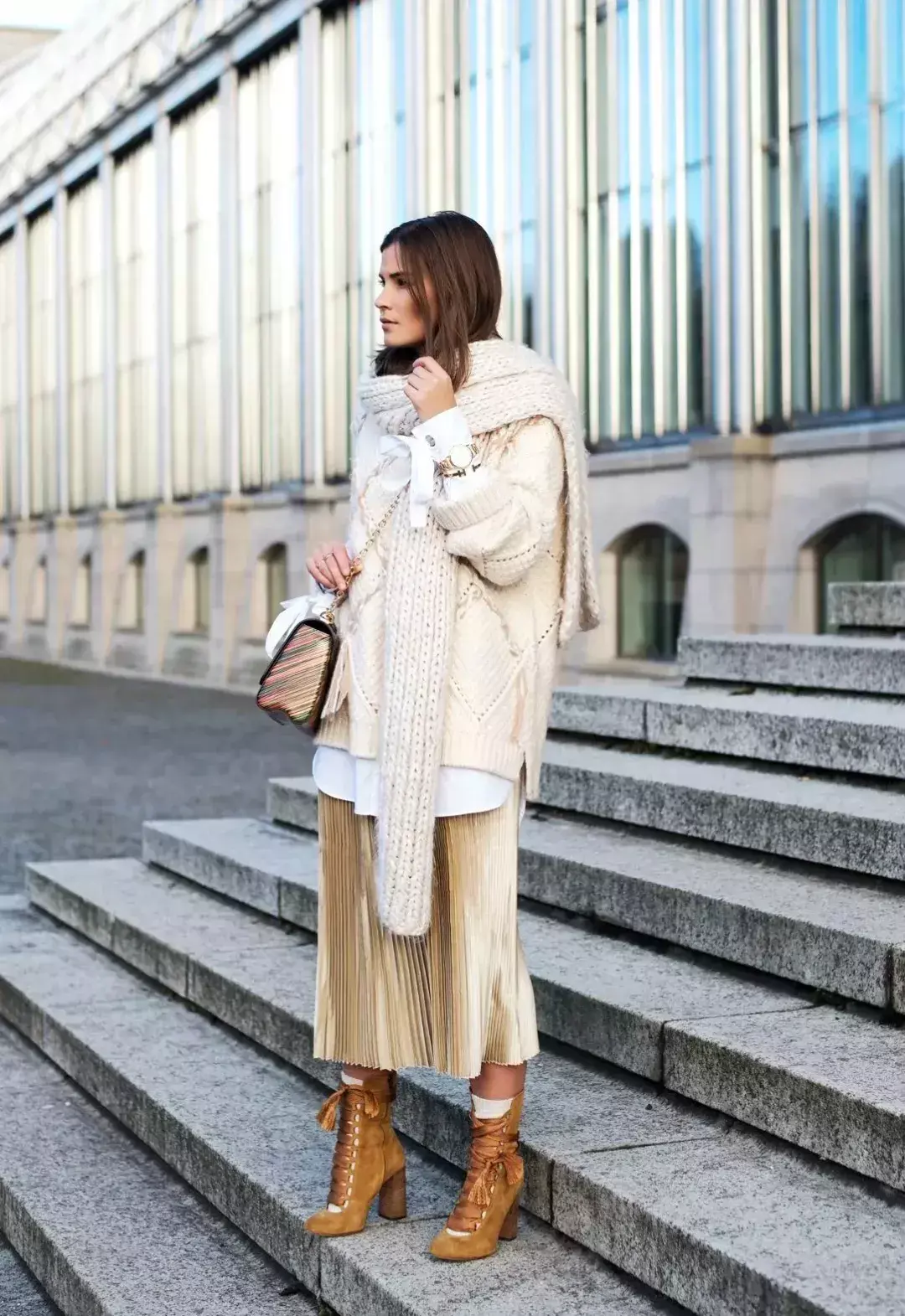 用寬鬆的毛衣搭配搖曳百褶裙,分鐘打造復古溫暖的文藝範兒。